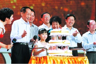 6日晚,一场献给袁隆平和首届中国杂交水稻大会的晚会《为了大地的丰收》在长沙举行。这台晚会,袁隆平和来自全国各地数百名杂交水稻的科研人员是最大的“明星”。“稻子熟了,妈妈我来看您了,本想我一个人来和您静静说会话,但是安江的父老乡亲太热情了……妈妈,您在安江,我在长沙,隔得很远,很远,我在梦里总是想着你,想着安江这个地方……”今年9月,稻子熟了,袁隆平离开长沙去了一趟安江,去看望妈妈。