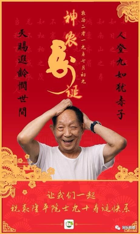 2019年8月9日(农历七月初九),中国工程院院士、著名杂交水稻专家,杂交水稻之父袁隆平九十华诞。
